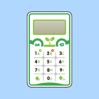 参加者が回答を送信する端末です。ボタン電池で駆動します。 |