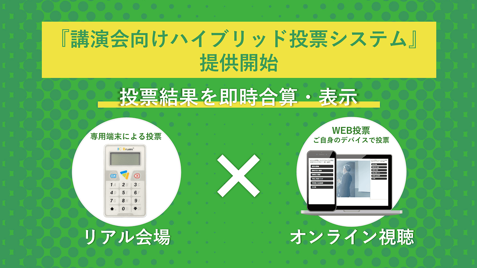 木村情報技術とICブレインズはこうした声を受け、「ICブレインズの専用端末による投票」と「木村情報技術のライブ配信に対応したシームレスなWEB投票システム」を連携。双方の投票結果を即時に合算表示できる仕組みを実現しました。