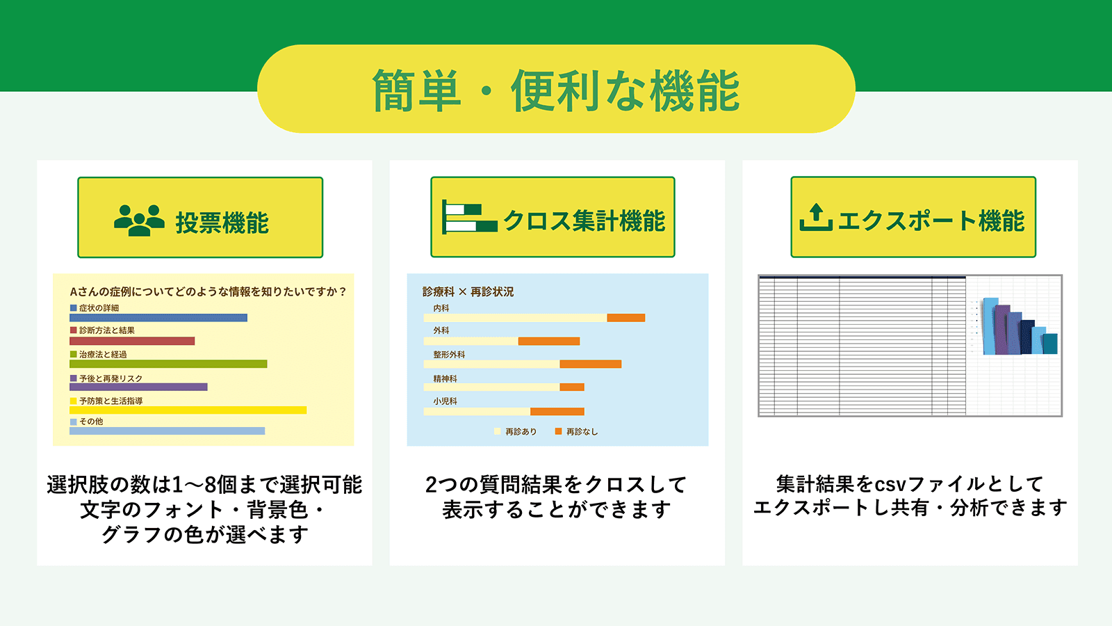 - 結果を即時にグラフ表示(例:理解度・賛否など)