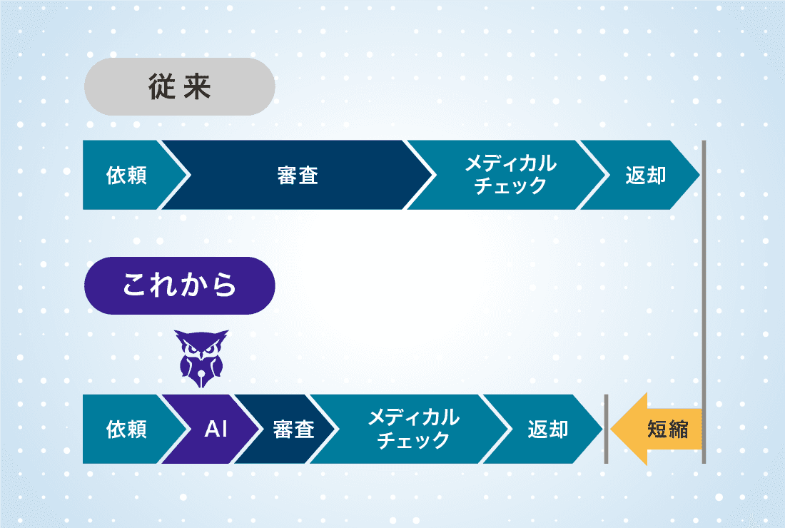 生成AIの活用によりレビュー作業を効率化し、審査完了まで時間を大幅に短縮します。