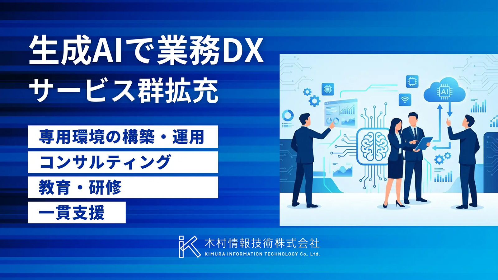 木村情報技術株式会社(本社:佐賀県佐賀市、代表取締役:木村 隆夫、以下「木村情報技術」)は、企業における生成AI活用ニーズの拡大を受け、生成AIに関する提供サービスを拡充しました。