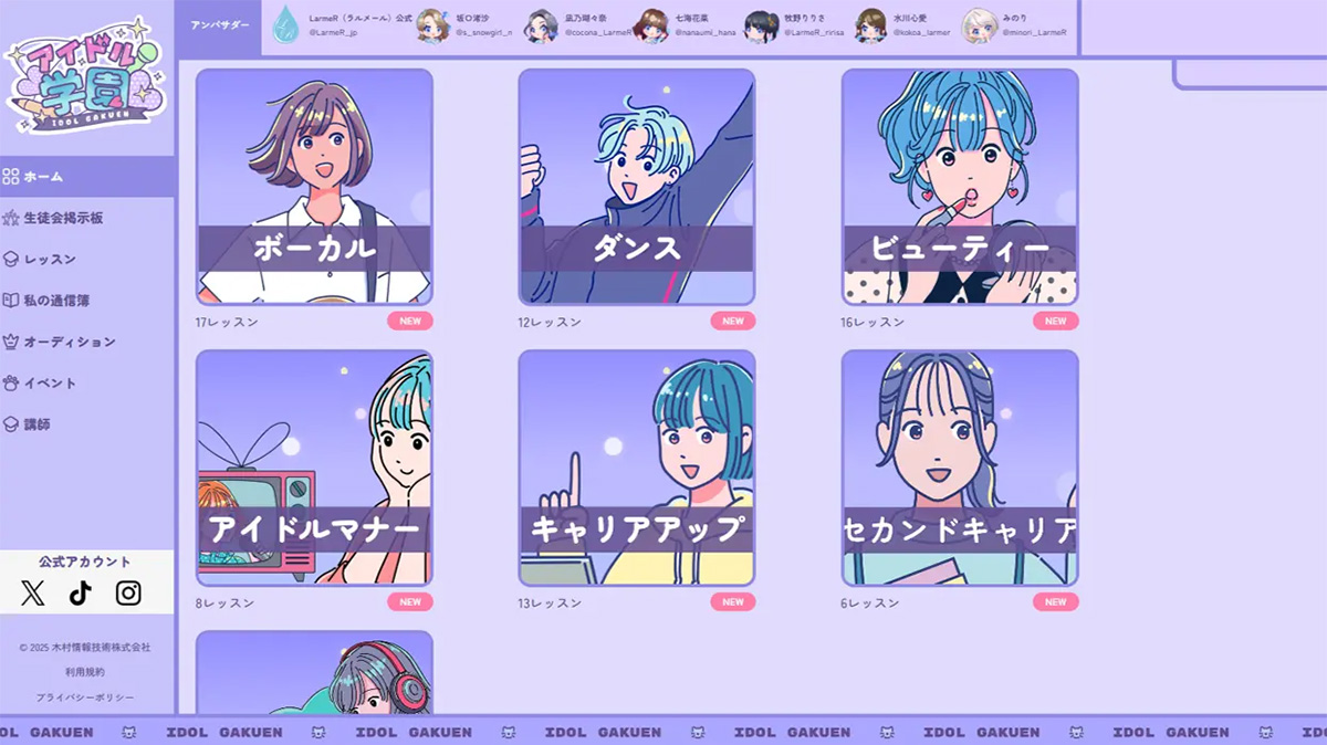 『アイドル学園』は、音楽プロデュース集団Sizuk Entertainment(シズクエンターテイメント)株式会社(所在地:東京都品川区、代表取締役社長:湯浅順司、以下「Sizuk Entertainment」)とIT企業の木村情報技術株式会社(本社:佐賀県佐賀市、代表取締役:木村 隆夫、以下「木村情報技術」)が、2025年1月に共同リリースした、アイドル志望者と現役アイドルを対象とした教育プラットフォームです。
