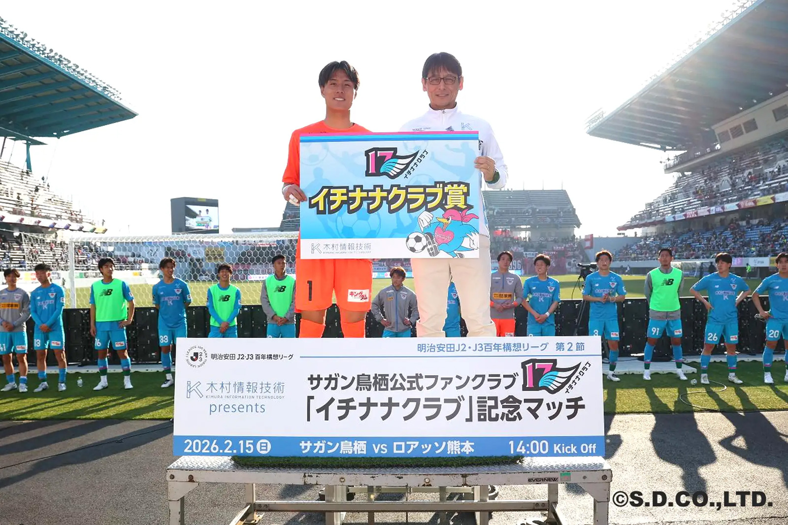2026年2月15日、駅前不動産スタジアムで開催された明治安田J2・J3百年構想リーグ 第2節 サガン鳥栖vsロアッソ熊本戦において、木村情報技術株式会社(本社:佐賀県佐賀市、代表取締役:木村 隆夫、以下「木村情報技術」)はマッチデースポンサーとして協賛しました。