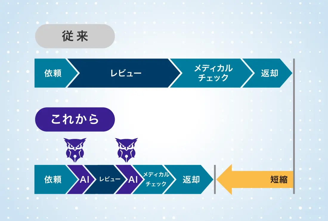 生成AIの活用によりレビュー作業を効率化し、審査完了まで時間を大幅に短縮します。