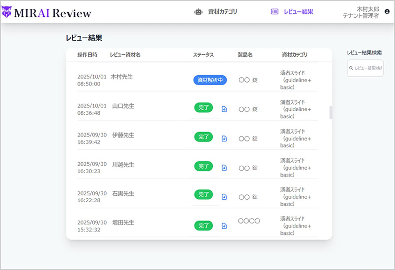 『MIRAI Review』は、製薬企業が医療関係者や患者向けに配布する各種資材について、製薬業界のルールを遵守しているかを生成AIが一次レビューするサービスです。2025年10月の提供開始以降、多くのお問い合わせをいただき、PoCの実施や本導入が進むなど高い関心が寄せられています。