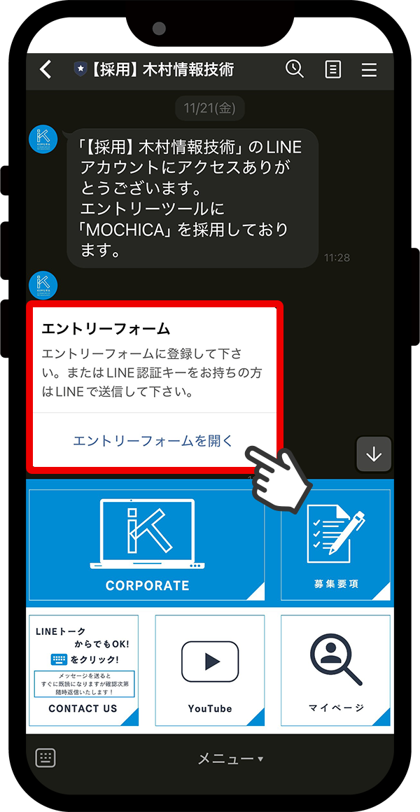 各エントリーは【採用】木村情報技術のLINEに友だち追加の上、エントリーフォームよりお申し込みください。